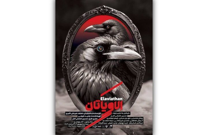 پوستر نمایش «الاویاتان» با طراحی اشکان قازانچایی، منتشر شد. این نمایش از ۲۴ مرداد در سالن چهارسوی تئاترشهر روی صحنه خواهد رفت.