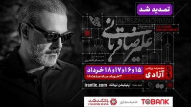 به گزارش آرتیسفر، شبهای اجرای کنسرت علیرضا قربانی در تهران در تاریخهای ۱۵ تا ۱۸ خرداد تمدید و بلیتفروشی آن…